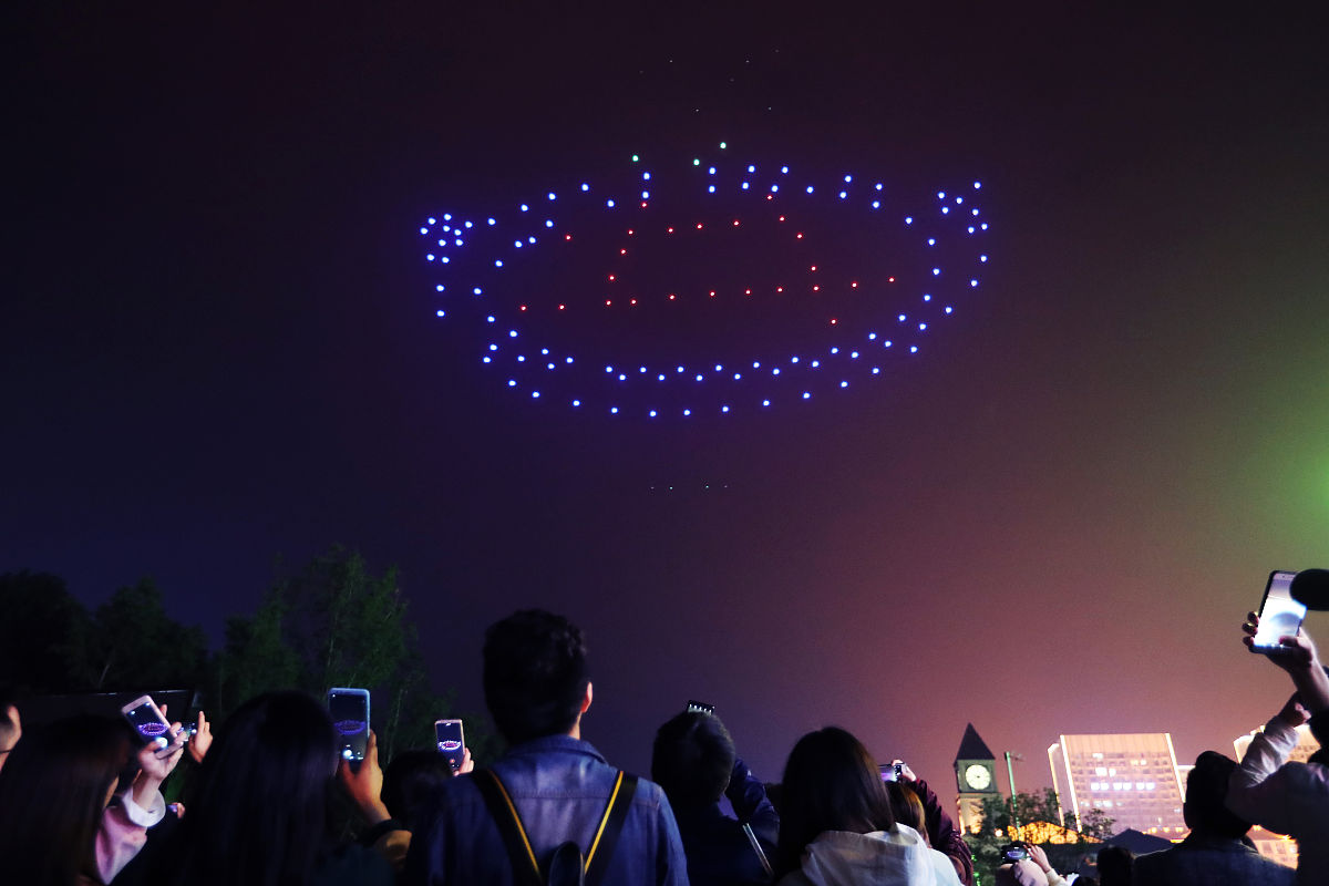 晚會開場曲《有山有海有你》的華彩段落,無人機群如同被仙女點亮的螢火,在夜空中次第綻放。最震撼的瞬間莫過于它們在空中重組為流動的銀河,與水面倒影交相輝映,觀眾席爆發的驚呼聲甚至蓋過了音樂。這種精確到0.5秒的燈光編隊表演,背后是北斗衛星定位系統和抗干擾算法的強力支撐。