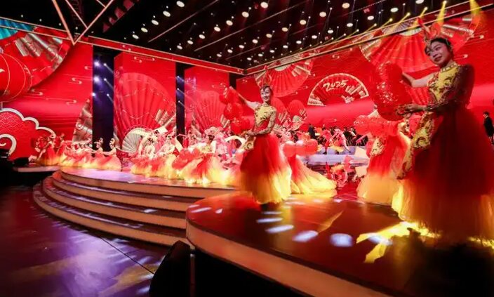 女聲獨唱《好日子》歌伴舞節(jié)目,悠揚的歌聲與優(yōu)美的舞蹈相得益彰,傳遞出對新年的美好祝福。華星少兒帶來的《國色》表演,孩子們用天真爛漫的舞姿展現(xiàn)了中華文化的絢麗多彩。具有中華韻味的旗袍走秀《梅花賦》,模特們身著精美的旗袍,優(yōu)雅地走在舞臺上,仿佛將觀眾帶入了一個充滿詩意的世界。