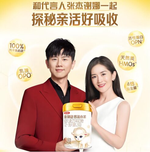 2022 年,伊利金領冠官宣張杰、謝娜共同成為金領冠代言人,借助明星夫妻的影響力,提升品牌知名度和親和力。同年,伊利金領冠塞納牧有機奶粉官宣代言人張晉。同年 11 月 9 日,伊利金領冠正式官宣簽約張杰成為品牌代言人。