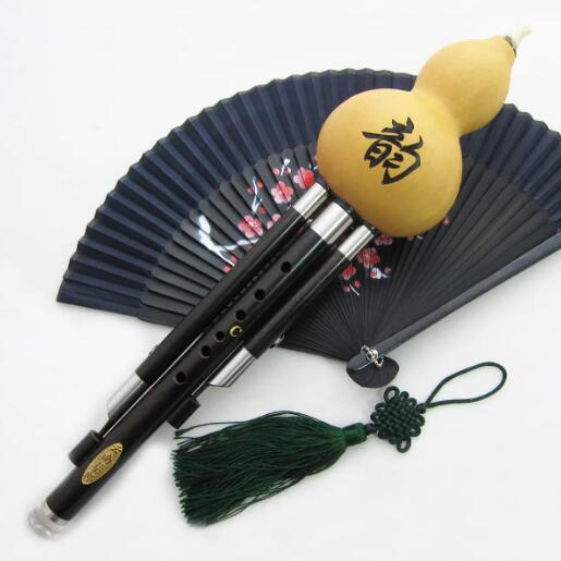 葫蘆絲造型別致,整體看起來很吉祥“吉”字,俗稱三管葫蘆絲,主要由一個完整的天然葫蘆組成、由三根竹筒和三根金屬簧片組成,總長約30厘米。將一根竹筒插入葫蘆的柄端作為吹口葫蘆既是盛氣的風箱,又是美化音色的音箱通常,顏色是黃色的、成熟的葫蘆,皮厚而結實,底部插著三根粗細不一的竹筒;三竹筒一般是用密密麻麻的紫竹做的中間的主管又粗又長,有七個音孔,上面有六個背可以安裝一個簧片來吹出從G1到G2的八度音程的旋律。左右兩側附管略細稍短,無音孔,各配一個簧片通常,左邊頭發上的附屬管道“e2”音,右邊附管發“a1”聲音或寂靜,與主管產生共鳴的和弦。
